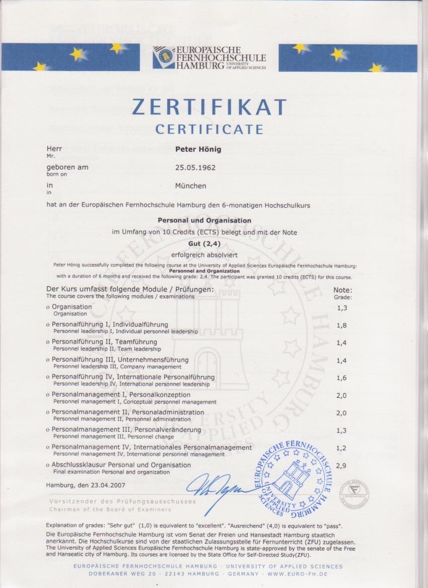 Zertifikat Personal und Organisation
