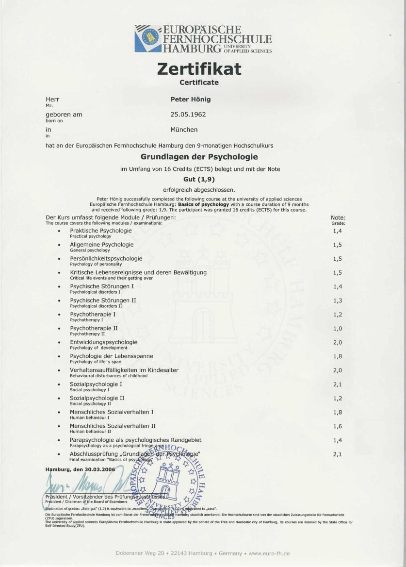 Zertifikat Psychologie