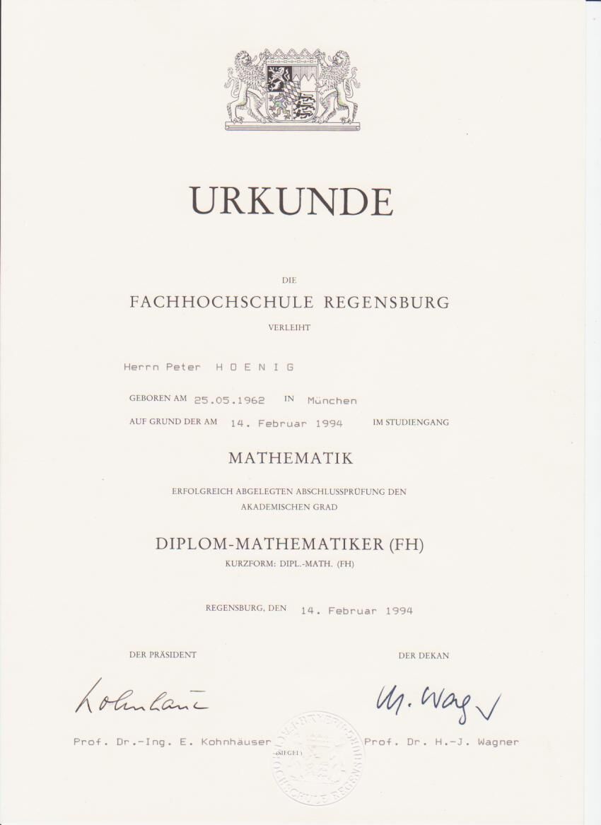 Diplom-Urkunde Mathematik (FH)
